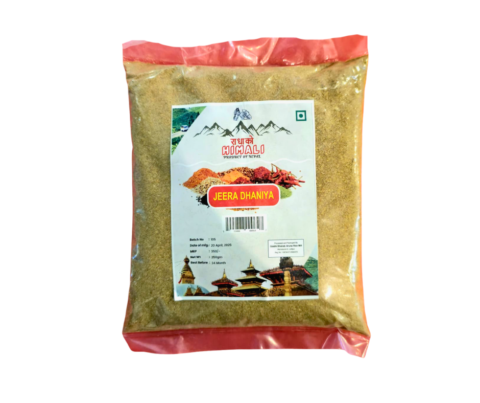 Cumin Coriander Powder is a flavorful blend of ground cumin and coriander seeds, widely used in Nepali and Indian cooking to add depth, aroma, and authentic taste to curries, dals, and snacks